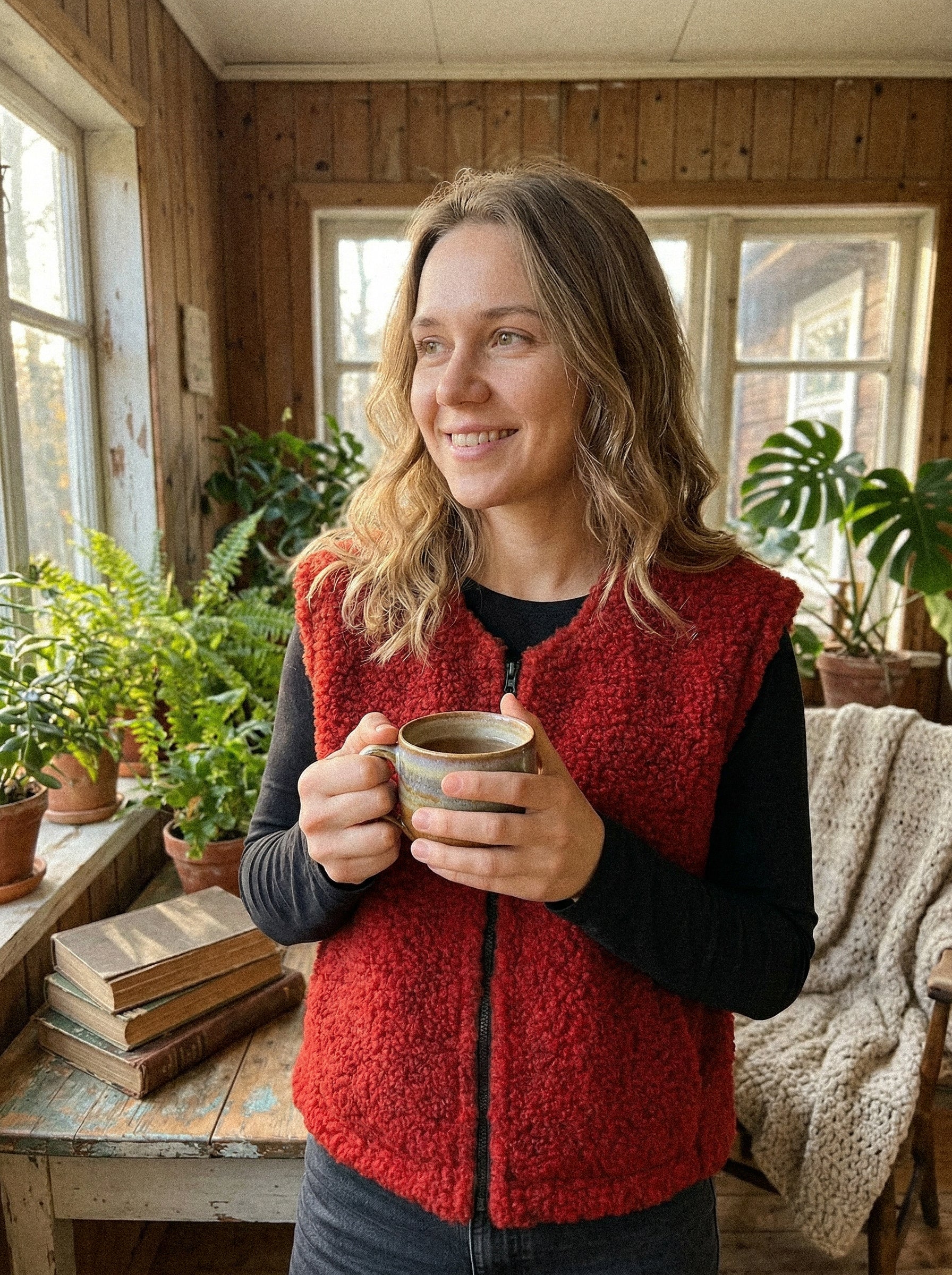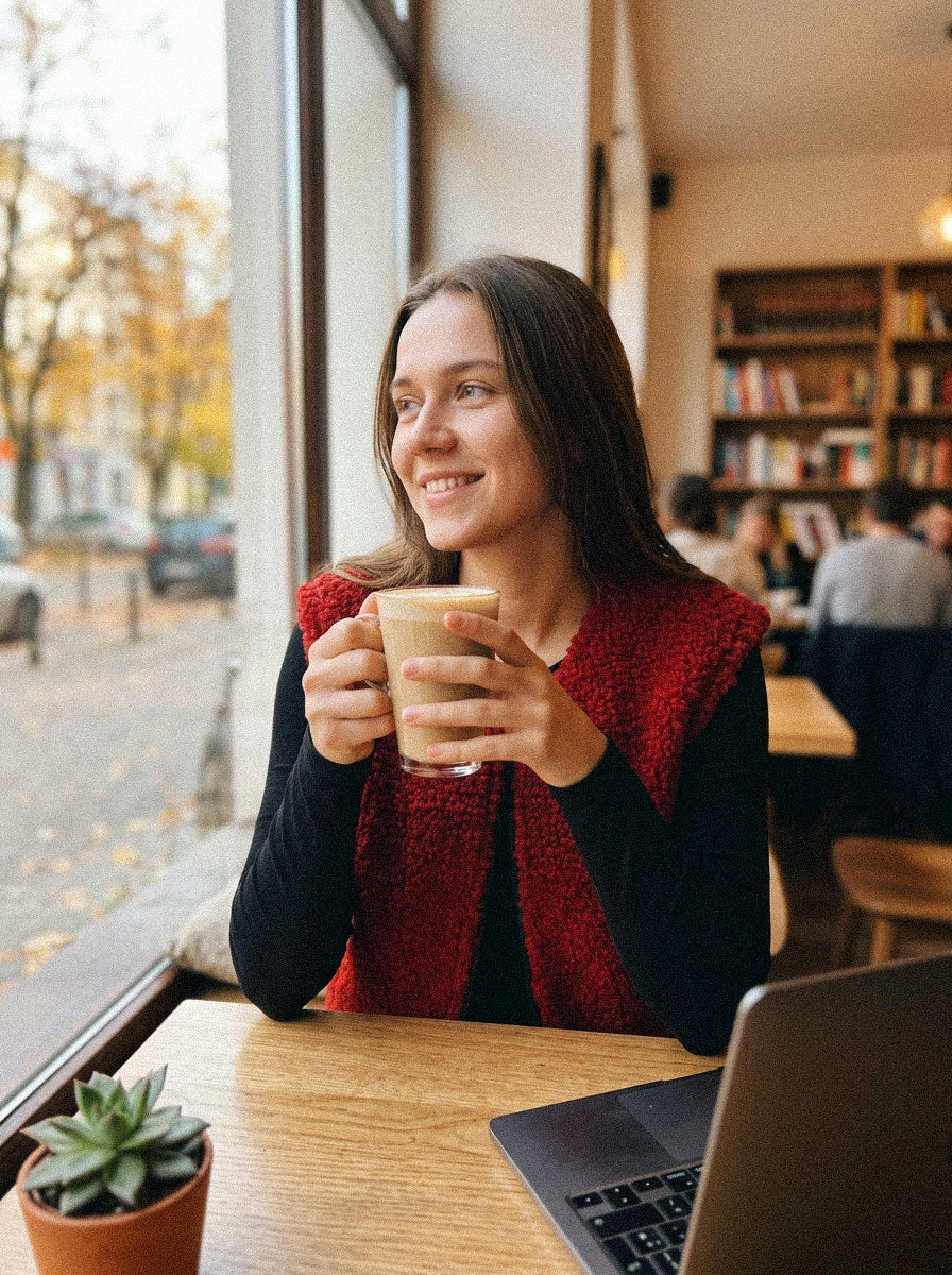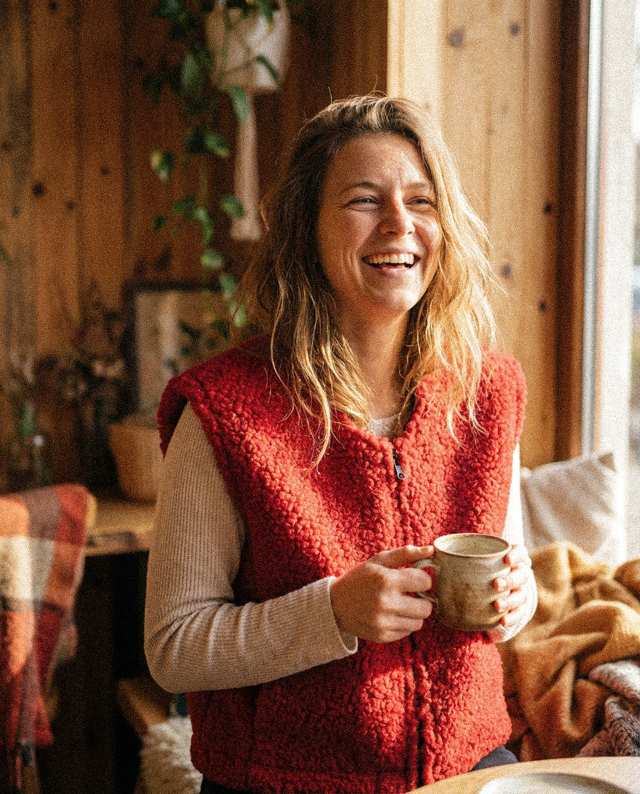 NORA VEST — czerwona kamizelka z wełny merino